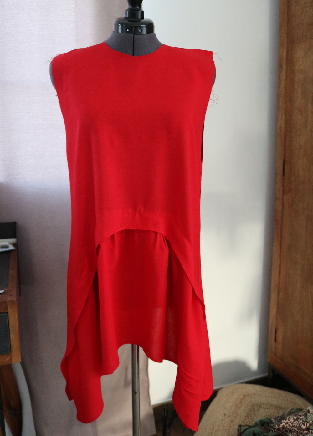 .. Same deal, pinned the last hem piece in place and sewed. When I tried it on I discovered I go them hem measurements right on the first try! Crazy considering what a total experiment this was. Then I just added sleeves..